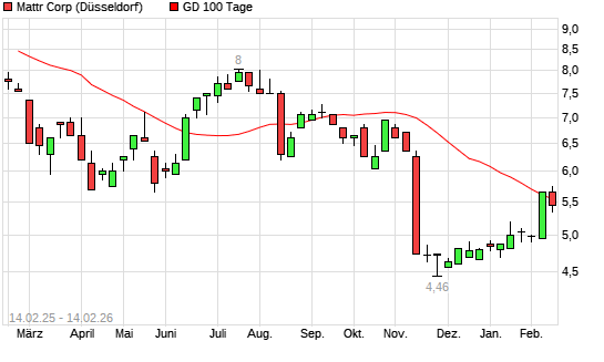 Mit dem Anstieg auf 5,65 EUR hat die Shawcor-Aktie am 13.02.2026 die 100-Tage-Linie nach oben gekreuzt.Die Shawcor-Aktie befindet sich seit dem 14.08.2025 im langfristigen Abwärtstrend und hat ...weiterlesen