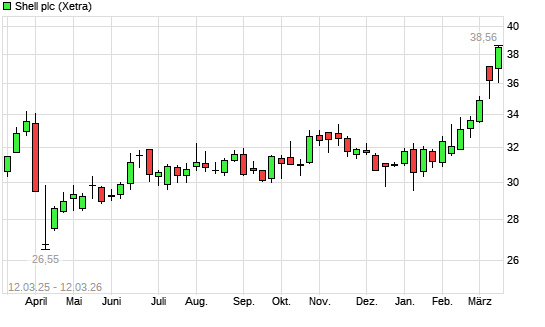 Mit dem Anstieg auf 39,00 EUR hat die Shell (ex Royal Dutch Shell) A-Aktie (ISIN GB00BP6MXD84) am 13.03.2026 ein neues All-Time-High erreicht und damit den Kurs vom ...weiterlesen