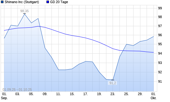 Mit dem Anstieg auf 95,40 EUR hat die Shimano-Aktie am 30.09.2025 die 20-Tage-Linie nach oben gekreuzt.Die Shimano-Aktie befindet sich seit dem 22.10.2024 im langfristigen Abwärtstrend und hat ...weiterlesen