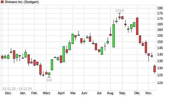 Mit dem Rücksetzer auf 127,60 EUR hat die Shimano-Aktie (ISIN JP3358000002) am 13.11.2024 ein neues 6-Monats-Tief erreicht und damit den Kurs vom 12.11.2024 eingestellt.Die Shimano-Aktie ...weiterlesen