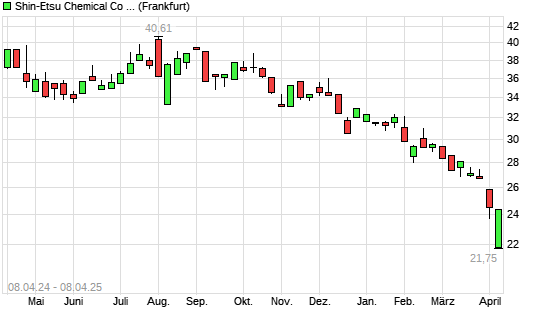 Mit dem Rücksetzer auf 22,46 EUR hat die Shin-Etsu Chemical-Aktie (ISIN JP3371200001) am 07.04.2025 ein neues 12-Monats-Tief erreicht und damit den Kurs vom 04.04.2025 ...weiterlesen