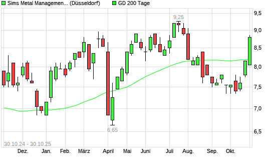 Mit dem Anstieg auf 8,80 EUR hat die Sims Metal Management-Aktie am 29.10.2025 die 200-Tage-Linie nach oben gekreuzt.Die Sims Metal Management-Aktie befand sich seit dem 19.08.2025 im langfristigen ...weiterlesen