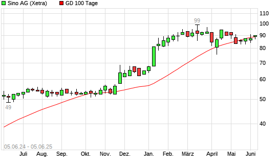 Mit dem Anstieg auf 88,80 EUR hat die Sino-Aktie am 04.06.2025 die 100-Tage-Linie nach oben gekreuzt.Die Sino-Aktie befindet sich seit dem 05.01.2024 im langfristigen Aufwärtstrend und hat in ...weiterlesen
