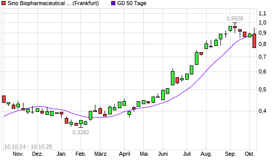 Mit dem Rücksetzer auf 0,85 EUR hat die Sino Biopharmaceutical-Aktie am 09.10.2025 die 50-Tage-Linie nach unten gekreuzt.Die Sino Biopharmaceutical-Aktie befindet sich seit dem 11.04.2025 ...weiterlesen