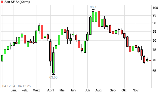 Mit dem Rücksetzer auf 69,10 EUR hat die Sixt St-Aktie (ISIN DE0007231326) am 03.12.2025 ein neues 6-Monats-Tief erreicht und damit den Kurs vom 20.11.2025 eingestellt.Die Sixt St-Aktie ...weiterlesen