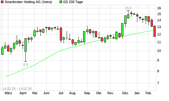 Mit dem Rücksetzer auf 11,90 EUR hat die Smartbroker (ex wallstreet:online)-Aktie am 13.02.2026 die 200-Tage-Linie nach unten gekreuzt.Die Smartbroker (ex ...weiterlesen