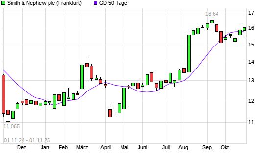 Mit dem Anstieg auf 16,04 EUR hat die Smith & Nephew-Aktie am 31.10.2025 die 50-Tage-Linie nach oben gekreuzt.Die Smith & Nephew-Aktie befindet sich seit dem 20.06.2025 im langfristigen ...weiterlesen