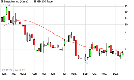 Mit dem Anstieg auf 6,68 EUR hat die Snap-Aktie am 23.12.2025 die 100-Tage-Linie nach oben gekreuzt.Die Snap-Aktie befindet sich seit dem 13.11.2025 im langfristigen Abwärtstrend und hat in ...weiterlesen