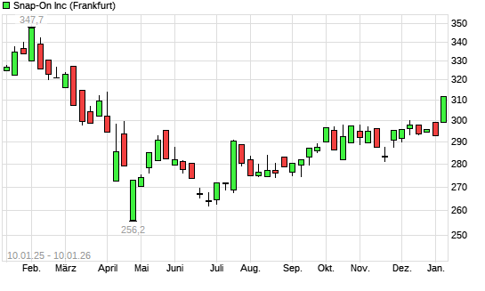 Mit dem Anstieg auf 311,80 EUR hat die Snap-On-Aktie (ISIN US8330341012) am 09.01.2026 ein neues 6-Monats-Hoch erreicht und damit den Kurs vom 07.01.2026 eingestellt.Die Snap-On-Aktie befindet ...weiterlesen