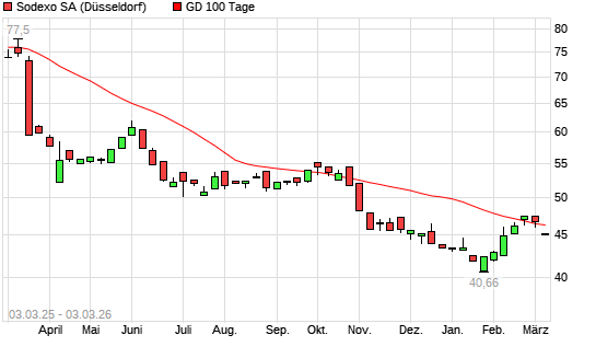 Mit dem Rücksetzer auf 45,46 EUR hat die Sodexo-Aktie am 02.03.2026 die 100-Tage-Linie nach unten gekreuzt.Die Sodexo-Aktie befindet sich seit dem 26.11.2024 im ...weiterlesen