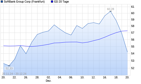 Mit dem Rücksetzer auf 56,90 EUR hat die Softbank Group-Aktie am 19.12.2024 die 20-Tage-Linie nach unten gekreuzt.Die Softbank Group-Aktie befindet sich seit dem 25.11.2024 im langfristigen ...weiterlesen