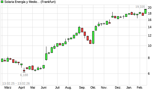 Mit dem Anstieg auf 19,34 EUR hat die Solaria Energia-Aktie (ISIN ES0165386014) am 12.02.2026 ein neues 3-Jahres-Hoch erreicht und damit den Kurs vom 28.12.2023 eingestellt.Die Solaria Energia-Aktie ...weiterlesen