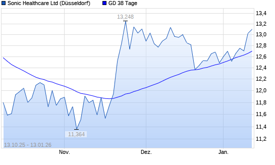 Mit dem Anstieg auf 12,86 EUR hat die Sonic Healthcare-Aktie am 12.01.2026 die 38-Tage-Linie nach oben gekreuzt.Die Sonic Healthcare-Aktie befindet sich seit dem 21.08.2025 im langfristigen ...weiterlesen