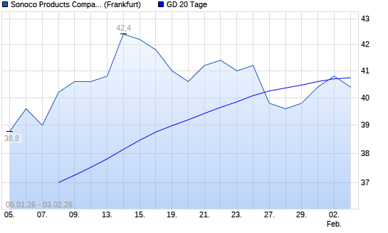 Mit dem Anstieg auf 40,80 EUR hat die Sonoco Products-Aktie am 02.02.2026 die 20-Tage-Linie nach oben gekreuzt.Die Sonoco Products-Aktie befindet sich seit dem 05.01.2026 im langfristigen Aufwärtstrend ...weiterlesen