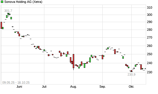 Mit dem Rücksetzer auf 231,10 EUR hat die Sonova Holding-Aktie (ISIN CH0012549785) am 15.10.2025 ein neues 12-Monats-Tief erreicht und damit den Kurs vom 01.10.2025 eingestellt.Die Sonova ...weiterlesen