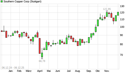 Mit dem Anstieg auf 149,30 EUR hat die Southern Copper-Aktie (ISIN US84265V1052) am 12.01.2026 ein neues All-Time-High erreicht und damit den Kurs vom 09.01.2026 eingestellt.Die Southern Copper-Aktie ...weiterlesen