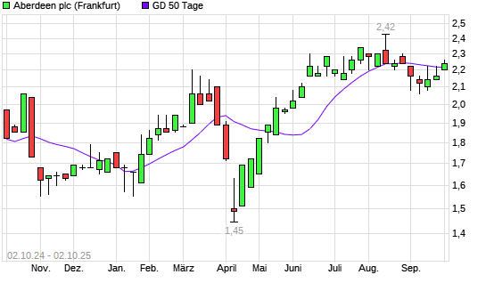 Mit dem Anstieg auf 2,26 EUR hat die Standard Life Aberdeen-Aktie am 01.10.2025 die 50-Tage-Linie nach oben gekreuzt.Die Standard Life Aberdeen-Aktie befindet sich seit dem 02.05.2025 im langfristigen ...weiterlesen