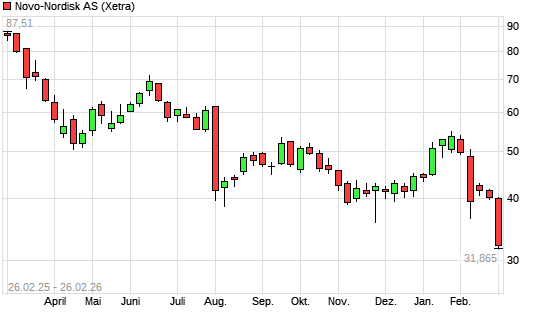Mit dem Rücksetzer auf 32,41 EUR hat die Novo Nordisk-Aktie (ISIN DK0062498333) am 25.02.2026 ein neues 3-Jahres-Tief erreicht und damit den Kurs vom 24.02.2026 eingestellt.Die ...weiterlesen