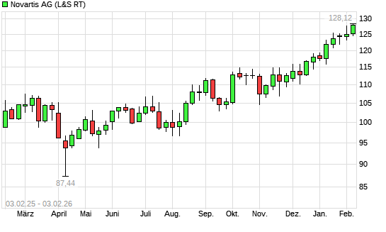 Mit dem Anstieg auf 127,32 EUR hat die Novartis-Aktie (ISIN CH0012005267) am 02.02.2026 ein neues All-Time-High erreicht und damit den Kurs vom 27.01.2026 eingestellt.Die Novartis-Aktie befindet ...weiterlesen