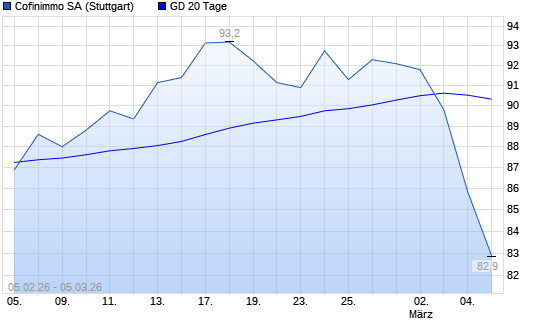 Mit dem Rücksetzer auf 88,80 EUR hat die Cofinimmo-Aktie am 04.03.2026 die 20-Tage-Linie nach unten gekreuzt.Die Cofinimmo-Aktie befindet sich seit dem 10.04.2025 im ...weiterlesen