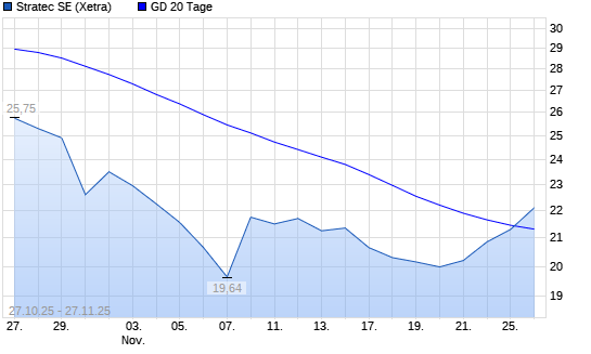 Mit dem Anstieg auf 21,95 EUR hat die Stratec-Aktie am 26.11.2025 die 20-Tage-Linie nach oben gekreuzt.Die Stratec-Aktie befindet sich seit dem 23.10.2025 im langfristigen Abwärtstrend und hat ...weiterlesen