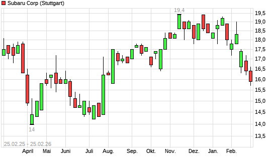 Mit dem Rücksetzer auf 15,80 EUR hat die Subaru-Aktie (ISIN JP3814800003) am 24.02.2026 ein neues 6-Monats-Tief erreicht und damit den Kurs vom 23.02.2026 eingestellt.Die ...weiterlesen