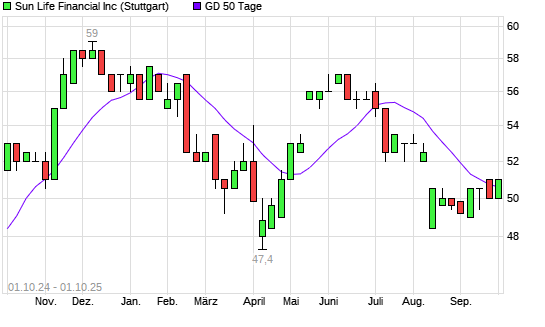 Mit dem Anstieg auf 50,50 EUR hat die Sun Life Financial-Aktie am 30.09.2025 die 50-Tage-Linie nach oben gekreuzt.Die Sun Life Financial-Aktie befindet sich seit dem 07.07.2025 im langfristigen ...weiterlesen