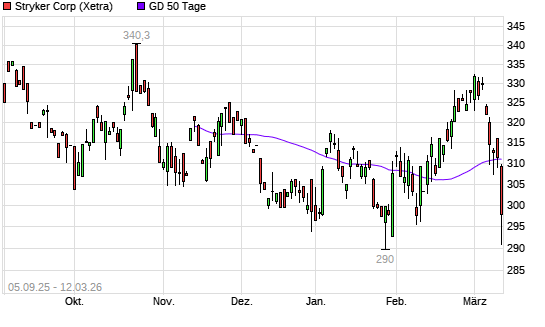 Mit dem Rücksetzer auf 299,20 EUR hat die Stryker-Aktie am 11.03.2026 die 50-Tage-Linie nach unten gekreuzt.Die Stryker-Aktie befindet sich seit dem 05.03.2026 im ...weiterlesen