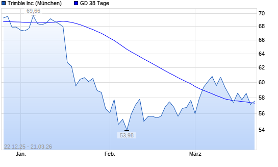 Mit dem Rücksetzer auf 56,26 EUR hat die Trimble-Aktie am 20.03.2026 die 38-Tage-Linie nach unten gekreuzt.Die Trimble-Aktie befindet sich seit dem 16.01.2026 im ...weiterlesen
