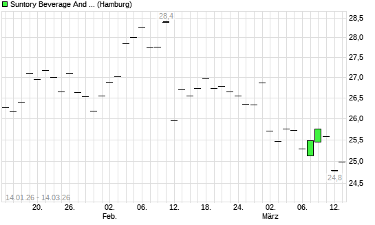 Mit dem Rücksetzer auf 24,42 EUR hat die Suntory Beverage & Food-Aktie (ISIN JP3336560002) am 13.03.2026 ein neues 10-Jahres-Tief erreicht und damit den Kurs vom ...weiterlesen