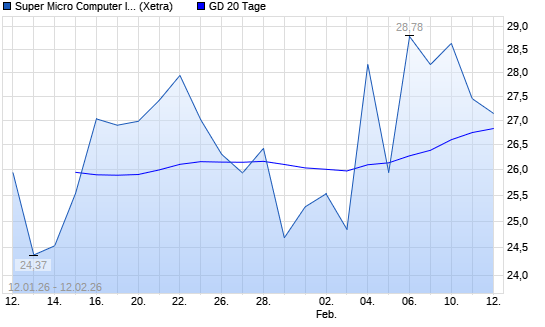 Mit dem Rücksetzer auf 26,70 EUR hat die Super Micro Computer-Aktie am 11.02.2026 die 20-Tage-Linie nach unten gekreuzt.Die Super Micro Computer-Aktie befindet sich seit dem 05.11.2025 ...weiterlesen