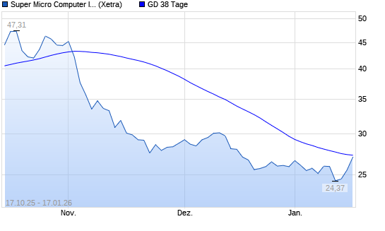Mit dem Anstieg auf 27,54 EUR hat die Super Micro Computer-Aktie am 16.01.2026 die 38-Tage-Linie nach oben gekreuzt.Die Super Micro Computer-Aktie befindet sich seit dem 05.11.2025 im langfristigen ...weiterlesen