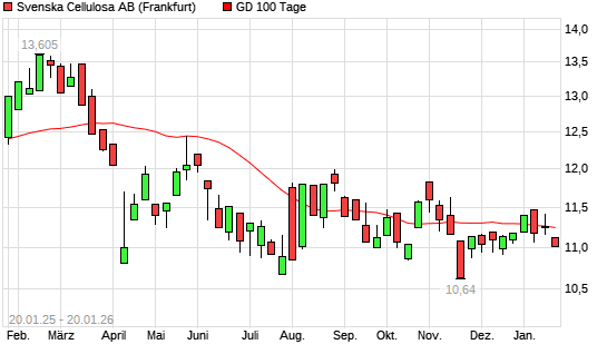 Mit dem Rücksetzer auf 11,12 EUR hat die Svenska Cellulosa B-Aktie am 19.01.2026 die 100-Tage-Linie nach unten gekreuzt.Die Svenska Cellulosa B-Aktie befindet sich seit dem 08.01.2026 im ...weiterlesen