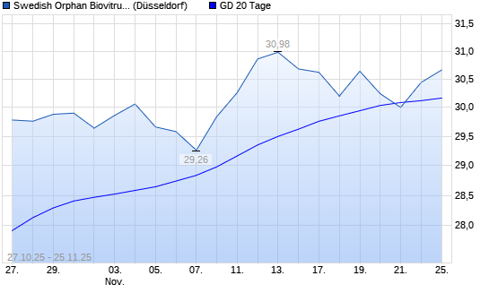 Mit dem Anstieg auf 30,44 EUR hat die Swedish Orphan Biovi-Aktie am 24.11.2025 die 20-Tage-Linie nach oben gekreuzt.Die Swedish Orphan Biovi-Aktie befindet sich seit dem 02.10.2025 im langfristigen ...weiterlesen