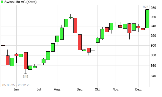 Mit dem Anstieg auf 972,20 EUR hat die Swiss Life-Aktie (ISIN CH0014852781) am 19.12.2025 ein neues All-Time-High erreicht und damit den Kurs vom 18.12.2025 eingestellt.Die Swiss Life-Aktie ...weiterlesen