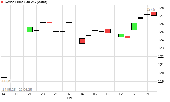 Mit dem Anstieg auf 126,90 EUR hat die Swiss Prime Site-Aktie (ISIN CH0008038389) am 19.06.2025 ein neues All-Time-High erreicht und damit den Kurs vom 05.05.2025 eingestellt.Die Swiss Prime ...weiterlesen