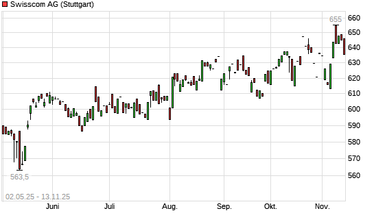 Mit dem Anstieg auf 649,00 EUR hat die Swisscom-Aktie (ISIN CH0008742519) am 12.11.2025 ein neues All-Time-High erreicht und damit den Kurs vom 20.10.2025 eingestellt.Die ...weiterlesen