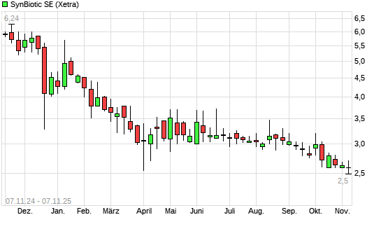 Mit dem Rücksetzer auf 2,50 EUR hat die SynBiotic-Aktie (ISIN DE000A3E5A59) am 06.11.2025 ein neues All-Time-Low erreicht und damit den Kurs vom 05.11.2025 eingestellt.Die SynBiotic-Aktie ...weiterlesen