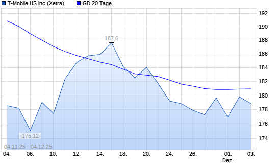 Mit dem Rücksetzer auf 179,16 EUR hat die T-Mobile US-Aktie am 03.12.2025 die 20-Tage-Linie nach unten gekreuzt.Die T-Mobile US-Aktie befindet sich seit dem 22.08.2025 im langfristigen ...weiterlesen