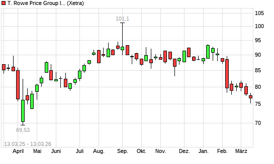 Mit dem Rücksetzer auf 76,51 EUR hat die T. Rowe Price Group-Aktie (ISIN US74144T1088) am 12.03.2026 ein neues 6-Monats-Tief erreicht und damit den Kurs vom 11.03.2026 ...weiterlesen