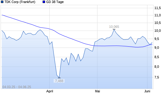 Mit dem Rücksetzer auf 9,17 EUR hat die TDK-Aktie am 03.06.2025 die 38-Tage-Linie nach unten gekreuzt.Die TDK-Aktie befindet sich seit dem 03.02.2025 im langfristigen Abwärtstrend und hat ...weiterlesen
