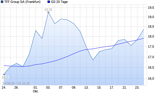 Mit dem Anstieg auf 17,85 EUR hat die TFF Group-Aktie am 23.10.2025 die 20-Tage-Linie nach oben gekreuzt.Die TFF Group-Aktie befindet sich seit dem 23.05.2024 im langfristigen Abwärtstrend und ...weiterlesen