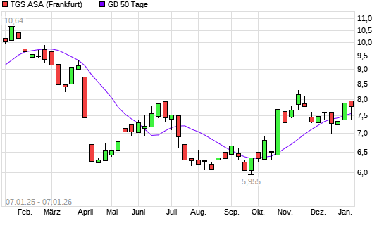 Mit dem Rücksetzer auf 7,40 EUR hat die TGS NOPEC Geophysical-Aktie am 06.01.2026 die 50-Tage-Linie nach unten gekreuzt.Die TGS NOPEC Geophysical-Aktie befindet sich seit ...weiterlesen