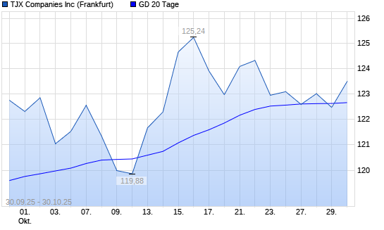 Mit dem Rücksetzer auf 122,46 EUR hat die TJX Companies-Aktie am 29.10.2025 die 20-Tage-Linie nach unten gekreuzt.Die TJX Companies-Aktie befindet sich seit dem 19.08.2025 im langfristigen ...weiterlesen
