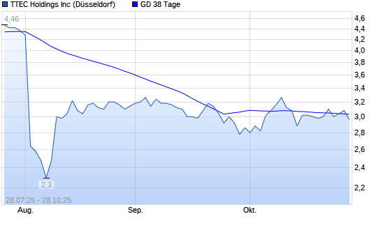 Mit dem Anstieg auf 3,06 EUR hat die TTEC Holdings-Aktie am 27.10.2025 die 38-Tage-Linie nach oben gekreuzt.Die TTEC Holdings-Aktie befindet sich seit dem 04.08.2025 im langfristigen Abwärtstrend ...weiterlesen