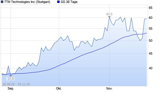 Mit dem Anstieg auf 55,50 EUR hat die TTM Technologies-Aktie am 25.11.2025 die 38-Tage-Linie nach oben gekreuzt.Die TTM Technologies-Aktie befindet sich seit dem 02.05.2025 ...weiterlesen