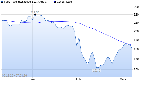 Mit dem Rücksetzer auf 184,00 EUR hat die Take 2 Interactive-Aktie am 06.03.2026 die 38-Tage-Linie nach unten gekreuzt.Die Take 2 Interactive-Aktie befindet sich seit dem ...weiterlesen