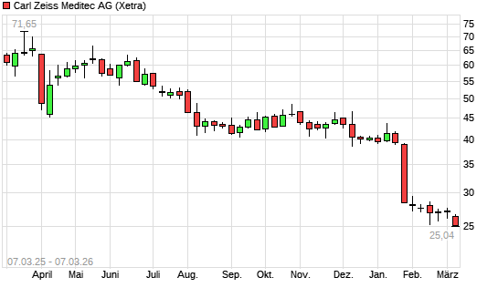 Mit dem Rücksetzer auf 25,26 EUR hat die Carl Zeiss Meditec-Aktie (ISIN DE0005313704) am 06.03.2026 ein neues 10-Jahres-Tief erreicht und damit den Kurs vom 05.03.2026 ...weiterlesen