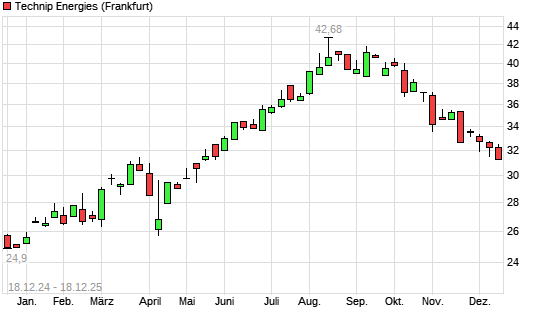 Mit dem Rücksetzer auf 31,68 EUR hat die Technip Energies-Aktie (ISIN NL0014559478) am 17.12.2025 ein neues 6-Monats-Tief erreicht und damit den Kurs vom 11.12.2025 ...weiterlesen