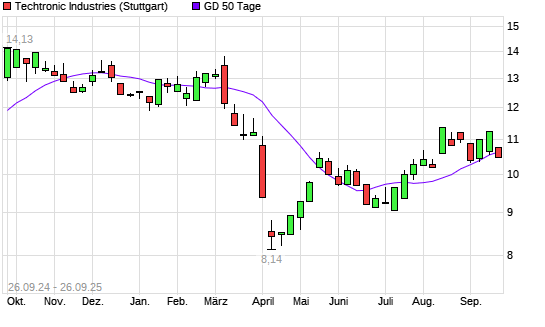 Mit dem Rücksetzer auf 10,52 EUR hat die Techtronic Industries-Aktie am 25.09.2025 die 50-Tage-Linie nach unten gekreuzt.Die Techtronic Industries-Aktie befindet sich seit dem 22.09.2025 ...weiterlesen